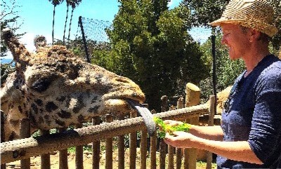 Santa Barbara CA: Zoo Giraffe Stretches For Salad