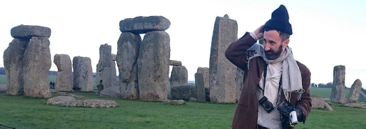 Your travel4seniors.com editor pauses near the standing rock structures at the ancient religious site on a cold day.